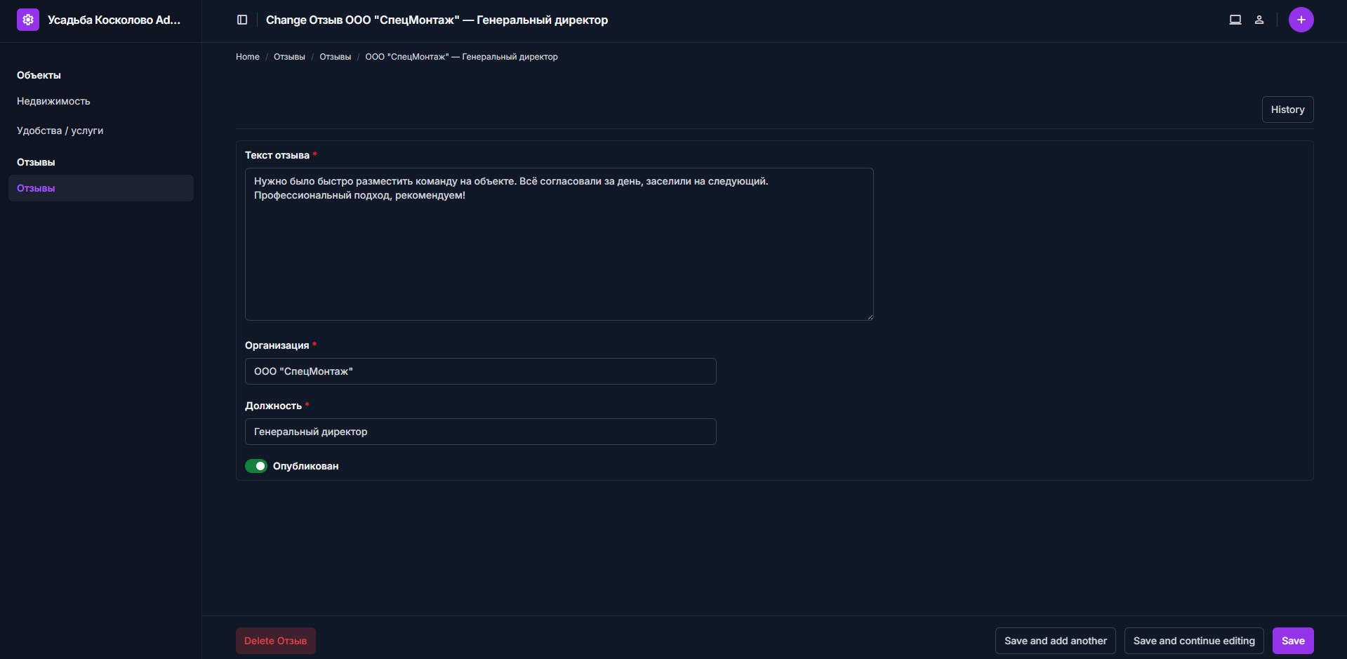 - Админ-панель Django для управления объектами